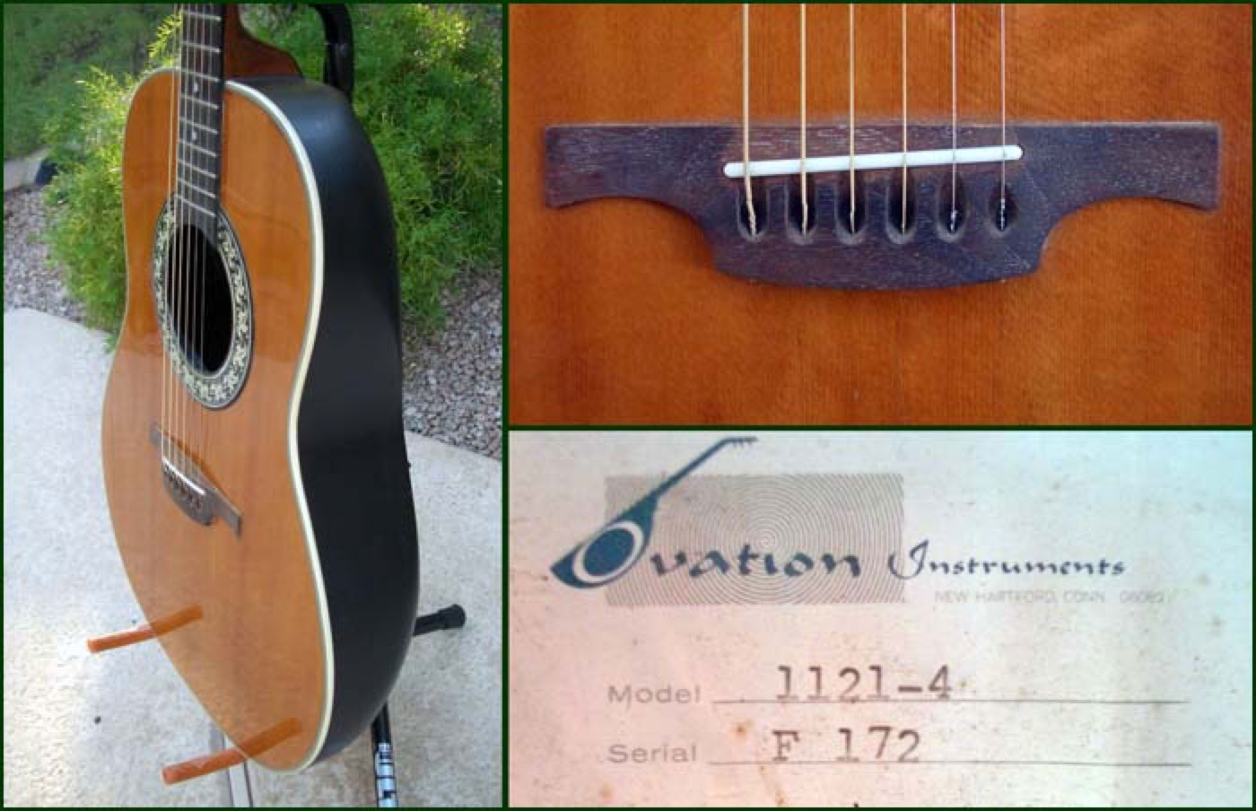 The Artist Balladeer, model 1121, was introduced in 1970 as a shallower bowl version of the Balladeer. The Artist depth bowl (also shared with the Glen Campbell Artist and Country Artist models), is about 3/4 inch shallower than the deep bowl. My guitar shown below is a 1970 model which features the 2nd generation winged bridge. Other features include chrome Grover tuners, 5 piece neck, Sitka spruce top and MOP dot inlays.