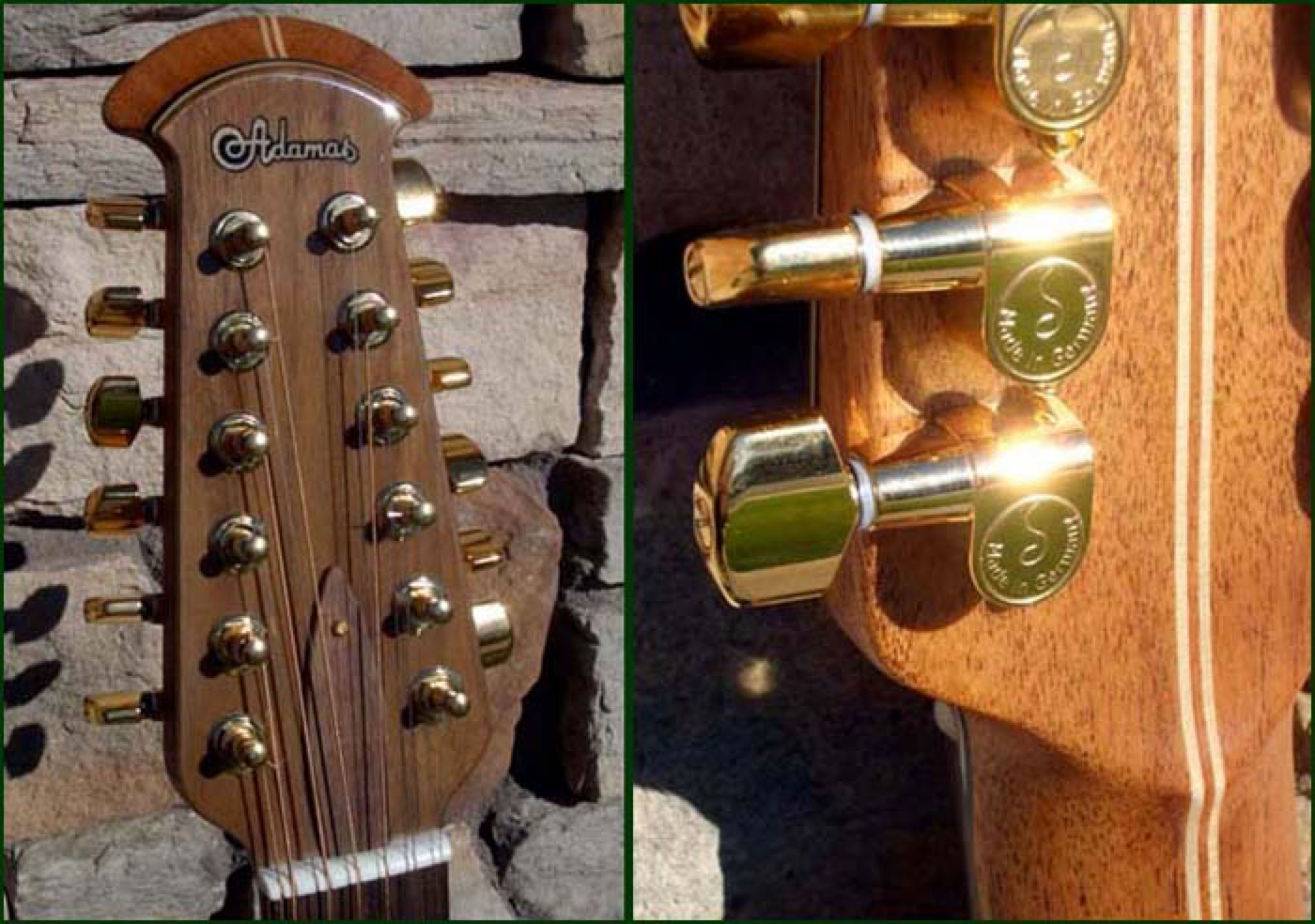 Fall of 2010 the Adamas Custom Shop built a few one off prototypes for a Roadshow. Shown below is the Wood Top Adamas 12-String. Through Lost Art Vintage Instruments I was able to purchase this guitar. An amazing specimen of power, depth and quality. The tonal range of this instrument is stunning and the only thing to match its voice is its good looks. The spruce top is finished in a deep pumpkin color with flush inlaid epaulets and Adamas neck with maple fretboard. The contour bowl is hand laid fiberglass and electronics are handled by the OP-Pro Studio.