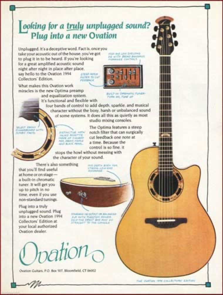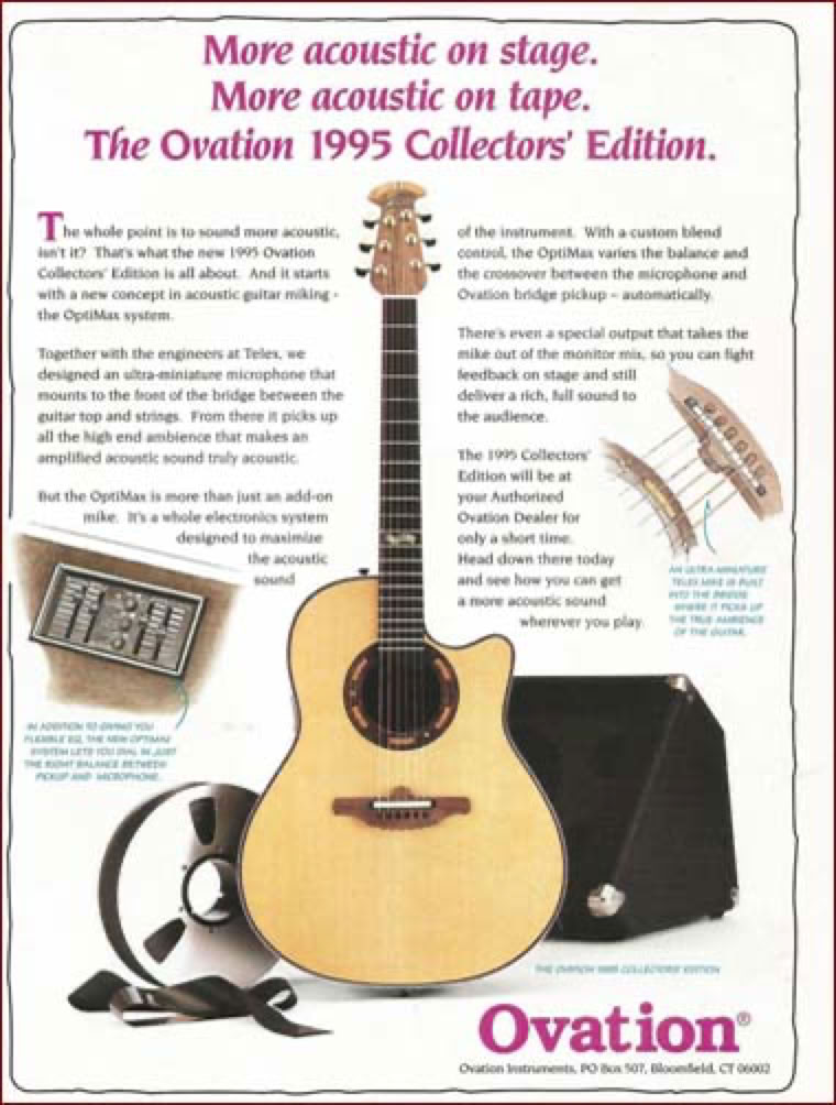 Each year from 1982 to 2010 Ovation produced a very special model guitar in limited quantities called the Collectors Series. More than just a showcase of different colors or pretty finishes, Ovation used this platform to showcase their latest technology and design concepts. Some innovations became mainstream success while others went back to the drawing board. But every Collectors Series model was unique in its own way and in many cases groundbreaking within the guitar industry.