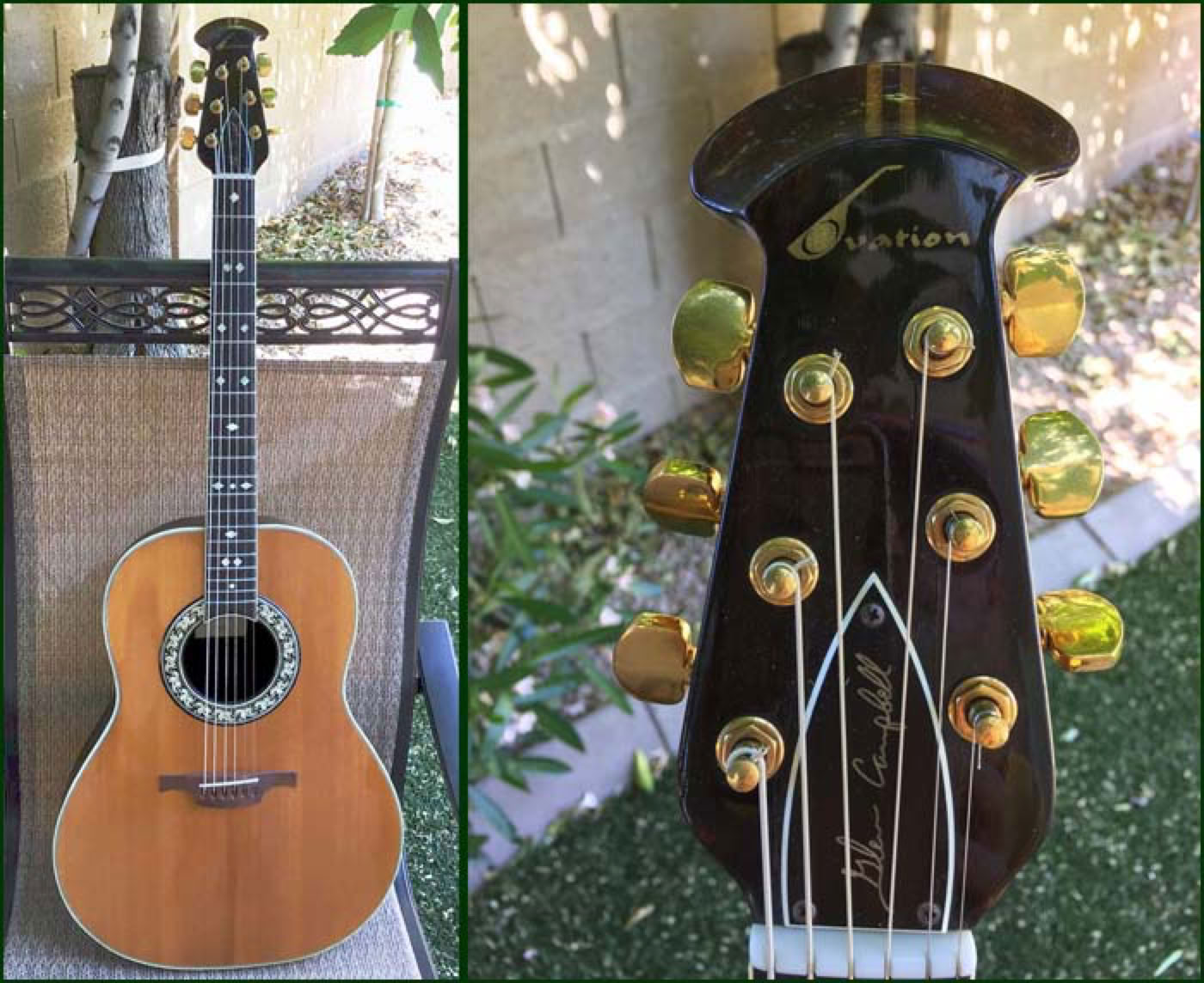 The Glen Campbell Artist Balladeer, model 1127, was introduced in 1969. Cosmetically it shares almost every feature with the Legend model, except for the bowl. The Artist series (1121 Artist Balladeer and 1127 Glen Campbell Artist) make use of a slightly shallower bowl. This decrease in bowl depth has some effect on the bass end and overall volume when compared to the Legend. However, this is more than offset by the increased comfort when holding and playing the shallower bowl. The example shown below is a 1969 model which carries over the larger Glen Campbell truss rod cover, the steeper headstock angle and uses the “wing” shaped walnut bridge. Other features are the bound neck, diamond shaped fret markers and gold Schaller tuners.