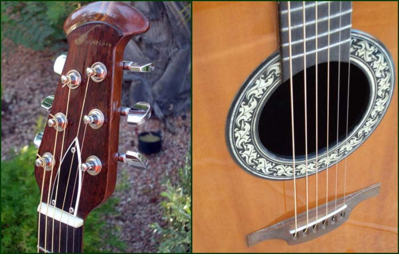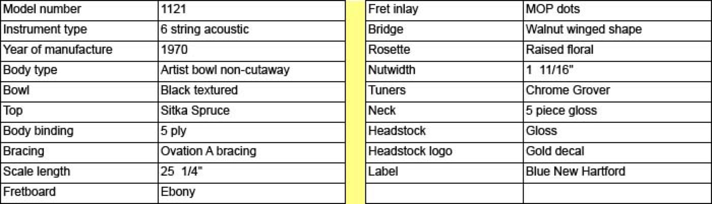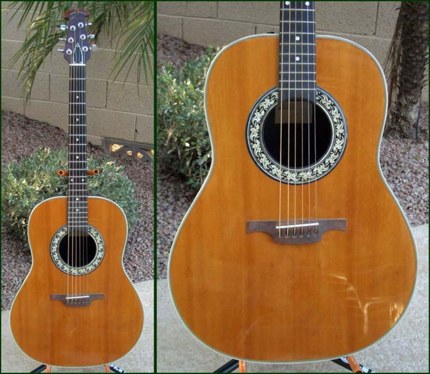 The Artist Balladeer, model 1121, was introduced in 1970 as a shallower bowl version of the Balladeer. The Artist depth bowl (also shared with the Glen Campbell Artist and Country Artist models), is about 3/4 inch shallower than the deep bowl. My guitar shown below is a 1970 model which features the 2nd generation winged bridge. Other features include chrome Grover tuners, 5 piece neck, Sitka spruce top and MOP dot inlays.