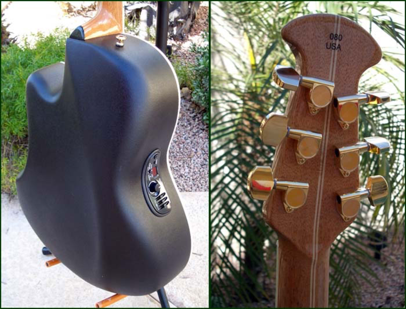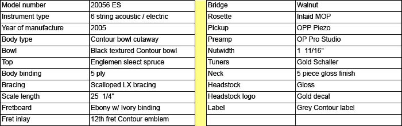 2005 will go down as a remarkable year in the history of Ovation. The year they changed the bowl shape. And they chose the 2005 Collectors Series to do it. This is akin to Mercedes changing the design of their star shaped hood ornament. The contour bowl of the 05 Collector maintains all that is good about the original design, yet addresses some of the shortcomings. The volume and projection is amazing, and the comfort of holding this guitar is incredible. It sits square on your knee while seated, and hangs perfectly perpendicular to the floor when strapped on. But there is more good to this guitar than just the bowl. The beautiful Englemann spruce top with abalone inlayed soundhole rosette is a subtle eye-catcher, as is the grained ivory binding. The new AEN gloss neck is super fast and the 05 Collector also sports the OP-Pro pre-amp with XLR output. The sound reminds me very much of the shiny bowl Balladeers, which is saying something. Overall, a whole lot off goodness in this instrument.