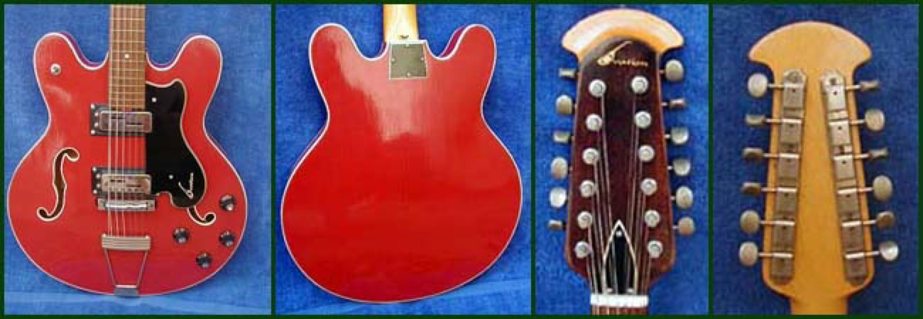 The Ovation Hurricane is the most rare member of the Electric Storm Series. Unofficial estimates put the total manufacturing run at about 200-300 units. The body is common with the Tornado - spruce top and maple back and sides. The electronics are also common, with dual volume and tone controls for the two high output pickups. The very earliest versions had a narrower 1-11/16 neck squared off at the body end. The majority of Hurricanes were equipped with a more traditional 1-3/4 with neck and the end was finished in the mustache shape of the Thunderhead. The tuners are chrome Klusons with mini-buttons. The example shown below is a very early 1968 version with serial number 615 hand written.
